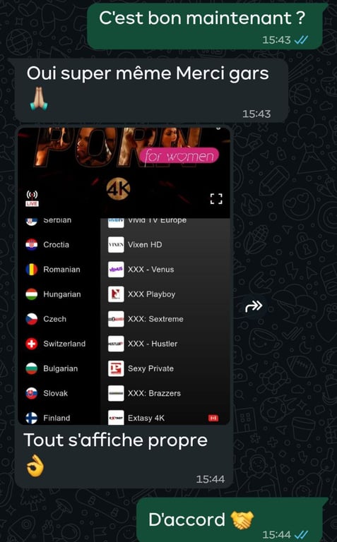 Plus de 30 chaînes adultes + plus de 200 vidéos adultes à la demande